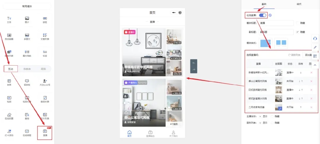 可以把小程序商城上面的产品,然后直接在直播间里面进行直播带货。