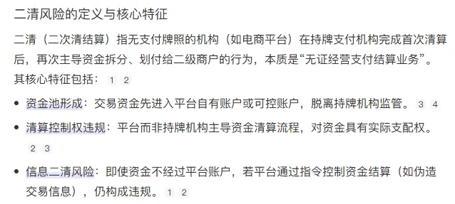 二清(二次清算)指非金融机构未经许可擅自从事资金清算业务,企业用分账系统向个人转佣金。